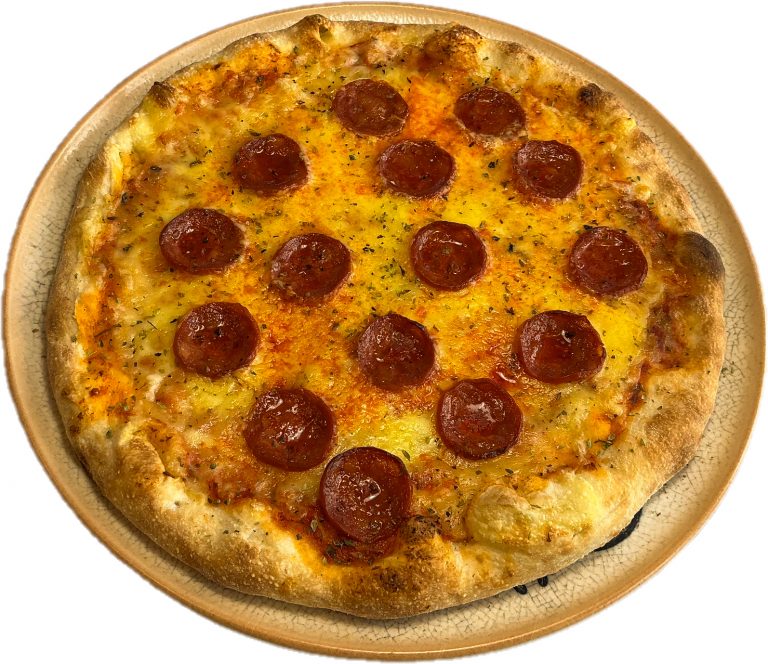 Tomate, queso, jamón, salami, aceitunas y orégano